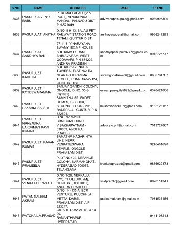 S.NO. NAME ADDRESS E-MAIL PH.NO.