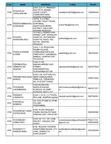 S.NO. NAME ADDRESS E-MAIL PH.NO.