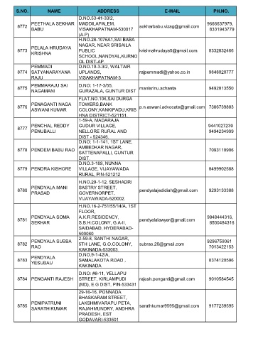 S.NO. NAME ADDRESS E-MAIL PH.NO.
