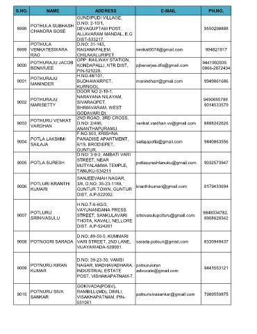9008 POTNOORI SARADA VARI STREET, 2ND LANE, sarada.potnuri@gmail.com 8330949437