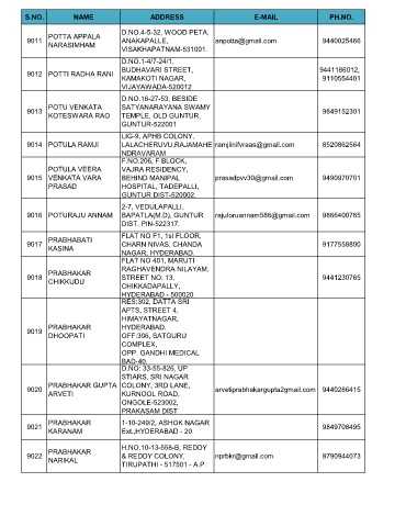S.NO. NAME ADDRESS E-MAIL PH.NO.