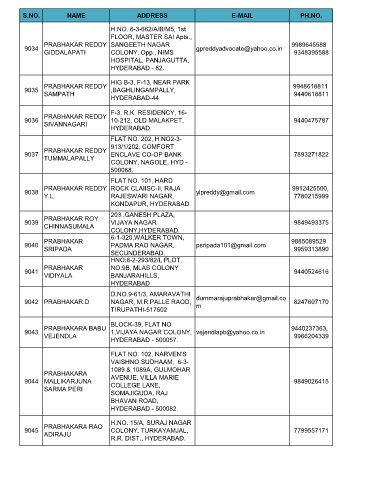 S.NO. NAME ADDRESS E-MAIL PH.NO.