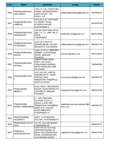 S.NO. NAME ADDRESS E-MAIL PH.NO.