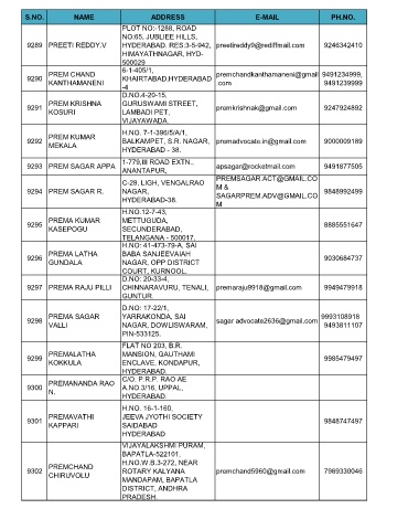 S.NO. NAME ADDRESS E-MAIL PH.NO.