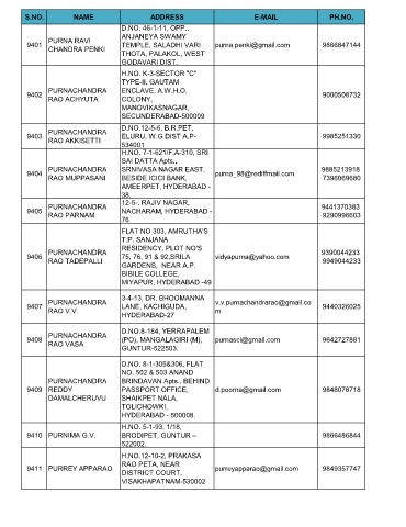 S.NO. NAME ADDRESS E-MAIL PH.NO.