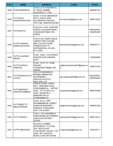 S.NO. NAME ADDRESS E-MAIL PH.NO.