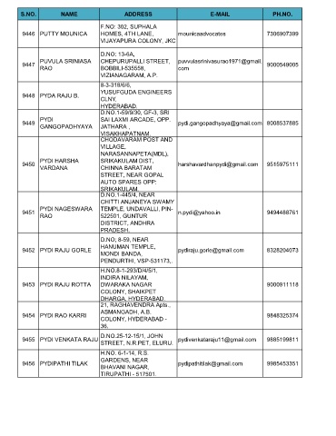 S.NO. NAME ADDRESS E-MAIL PH.NO.
