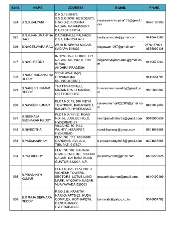 924 B.N.S.KALYANI F.NO.G-2, KRISHNA nageswararao.pala153@gmail.c 9676188999
