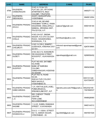 S.NO. NAME ADDRESS E-MAIL PH.NO.