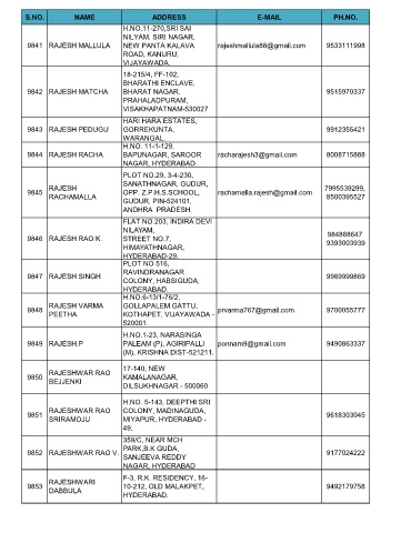 S.NO. NAME ADDRESS E-MAIL PH.NO.
