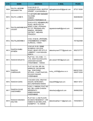 S.NO. NAME ADDRESS E-MAIL PH.NO.