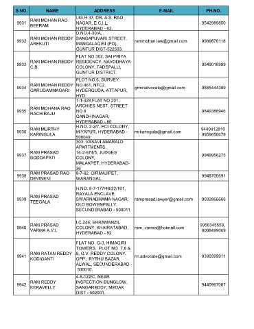 S.NO. NAME ADDRESS E-MAIL PH.NO.