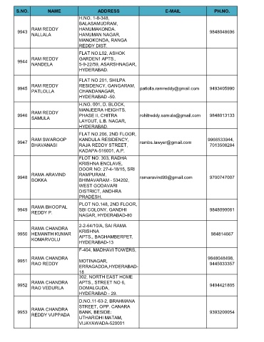 S.NO. NAME ADDRESS E-MAIL PH.NO.