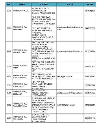 S.NO. NAME ADDRESS E-MAIL PH.NO.
