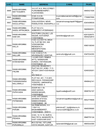 S.NO. NAME ADDRESS E-MAIL PH.NO.