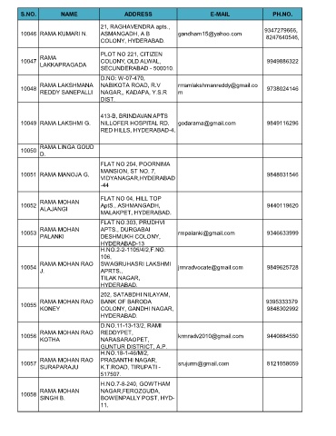 S.NO. NAME ADDRESS E-MAIL PH.NO.