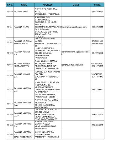 S.NO. NAME ADDRESS E-MAIL PH.NO.