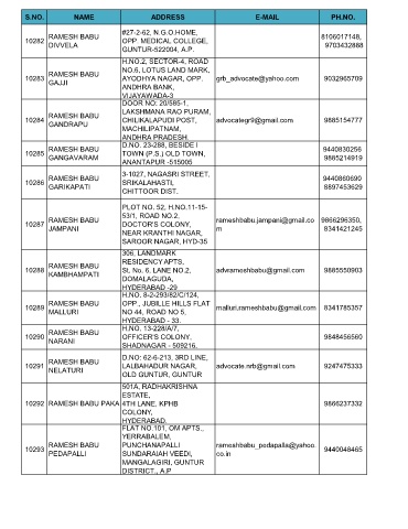 S.NO. NAME ADDRESS E-MAIL PH.NO.