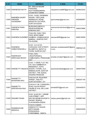 10362 RAMINENI SUDHEER NAMBUR, CHINNAKAKANI ramineni8985@gmail.com 8688199590