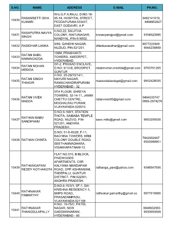 S.NO. NAME ADDRESS E-MAIL PH.NO.