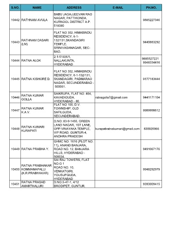 S.NO. NAME ADDRESS E-MAIL PH.NO.