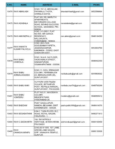 10480 RAVI BABU KARI ravibabu,kari74@gmail.com 9948790289