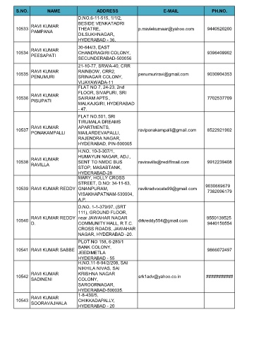 S.NO. NAME ADDRESS E-MAIL PH.NO.