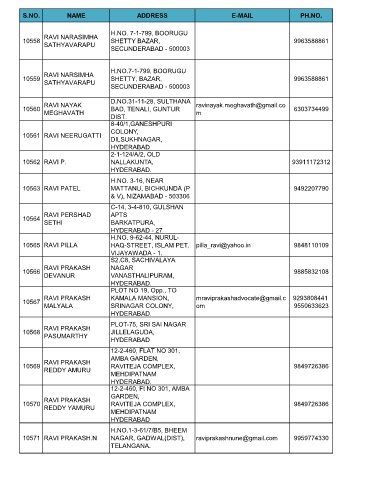 S.NO. NAME ADDRESS E-MAIL PH.NO.