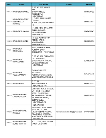 S.NO. NAME ADDRESS E-MAIL PH.NO.