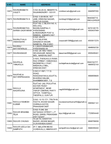 10673 RAVINDRANATH.S LINE, KRISHNA NAGAR, ravidragiri24@gmail.com 0863-2240220