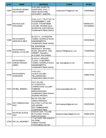 S.NO. NAME ADDRESS E-MAIL PH.NO.