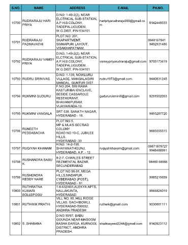 S.NO. NAME ADDRESS E-MAIL PH.NO.