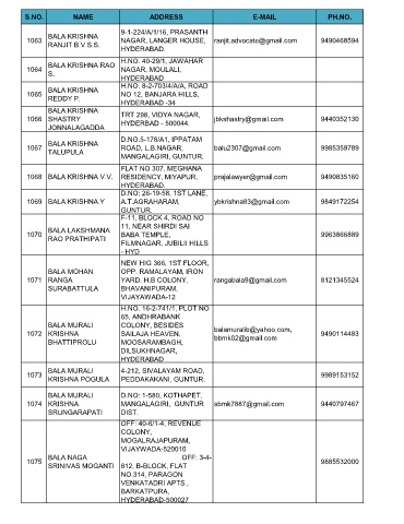 S.NO. NAME ADDRESS E-MAIL PH.NO.