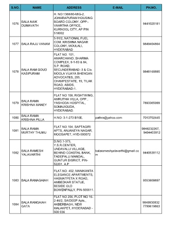 S.NO. NAME ADDRESS E-MAIL PH.NO.