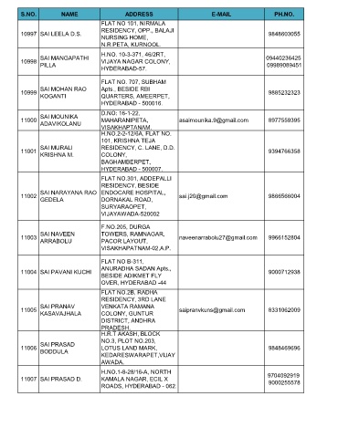 S.NO. NAME ADDRESS E-MAIL PH.NO.