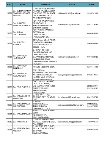 S.NO. NAME ADDRESS E-MAIL PH.NO.