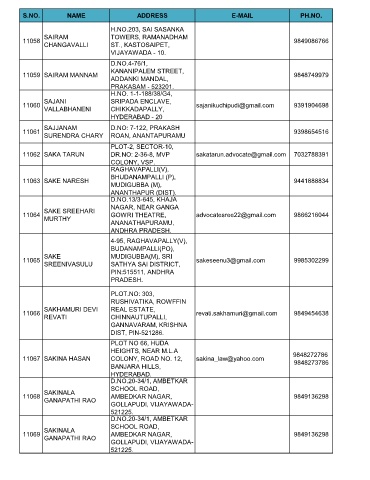 S.NO. NAME ADDRESS E-MAIL PH.NO.