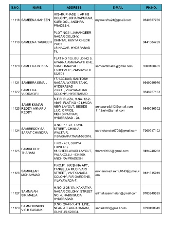 S.NO. NAME ADDRESS E-MAIL PH.NO.