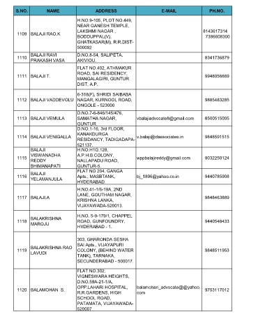 1113 BALAJI VEMULA SAMATHA NAGAR, vbalajiadvocate8@gmail.com 8500515005