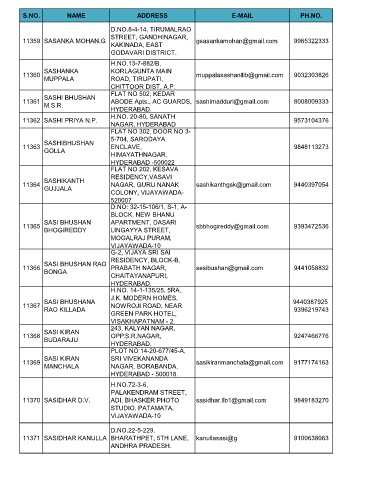 11359 SASANKA MOHAN.G gsasankamohan@gmail.com 9985322333