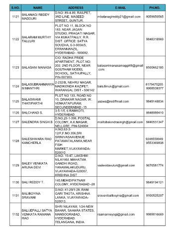 S.NO. NAME ADDRESS E-MAIL PH.NO.