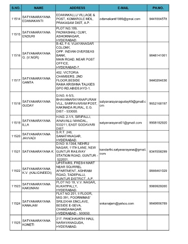S.NO. NAME ADDRESS E-MAIL PH.NO.