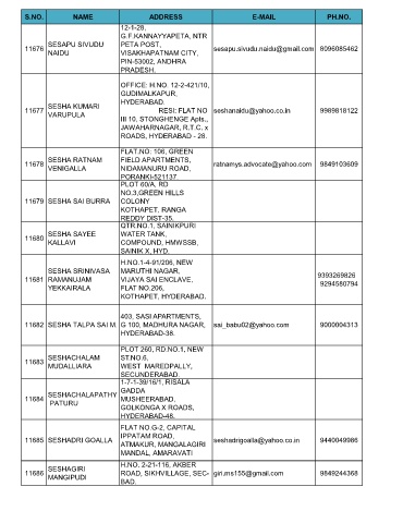 11682 SESHA TALPA SAI M. G 100, MADHURA NAGAR, sai_babu02@yahoo.com 9000004313