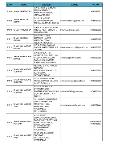 S.NO. NAME ADDRESS E-MAIL PH.NO.