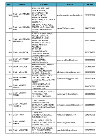 11856 SHAIK NAINA COBALDPET, 5th LINE, naina.shaik@gmail.com 9642712738