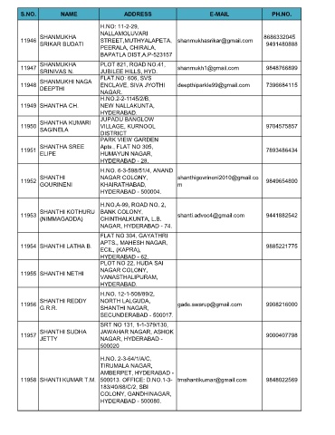 S.NO. NAME ADDRESS E-MAIL PH.NO.