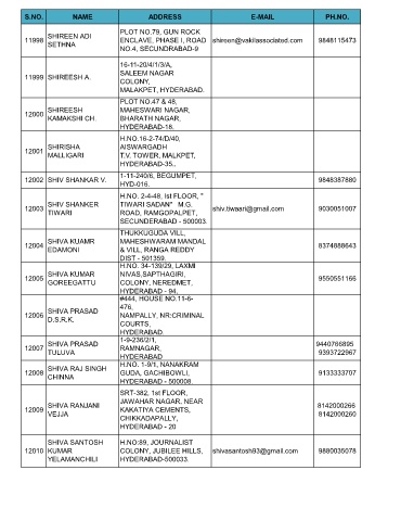 S.NO. NAME ADDRESS E-MAIL PH.NO.