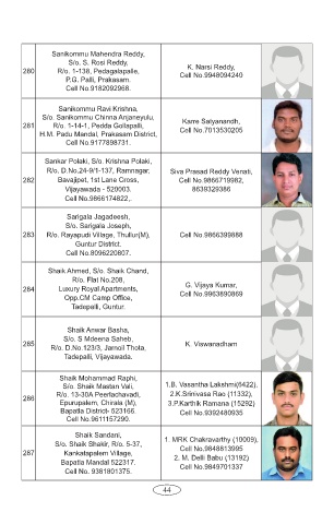280 R/o. 1-138, Pedagalapalle, Cell No.9948094240