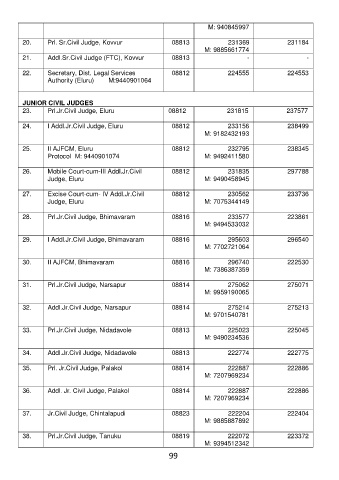 20. Prl. Sr.Civil Judge, Kovvur 08813 231369 231184