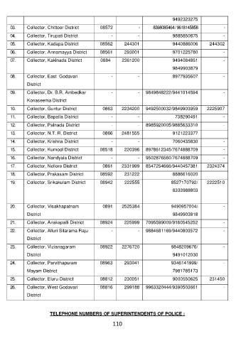 07. Collector, Kakinada District 0884 2361200 9494084851 -